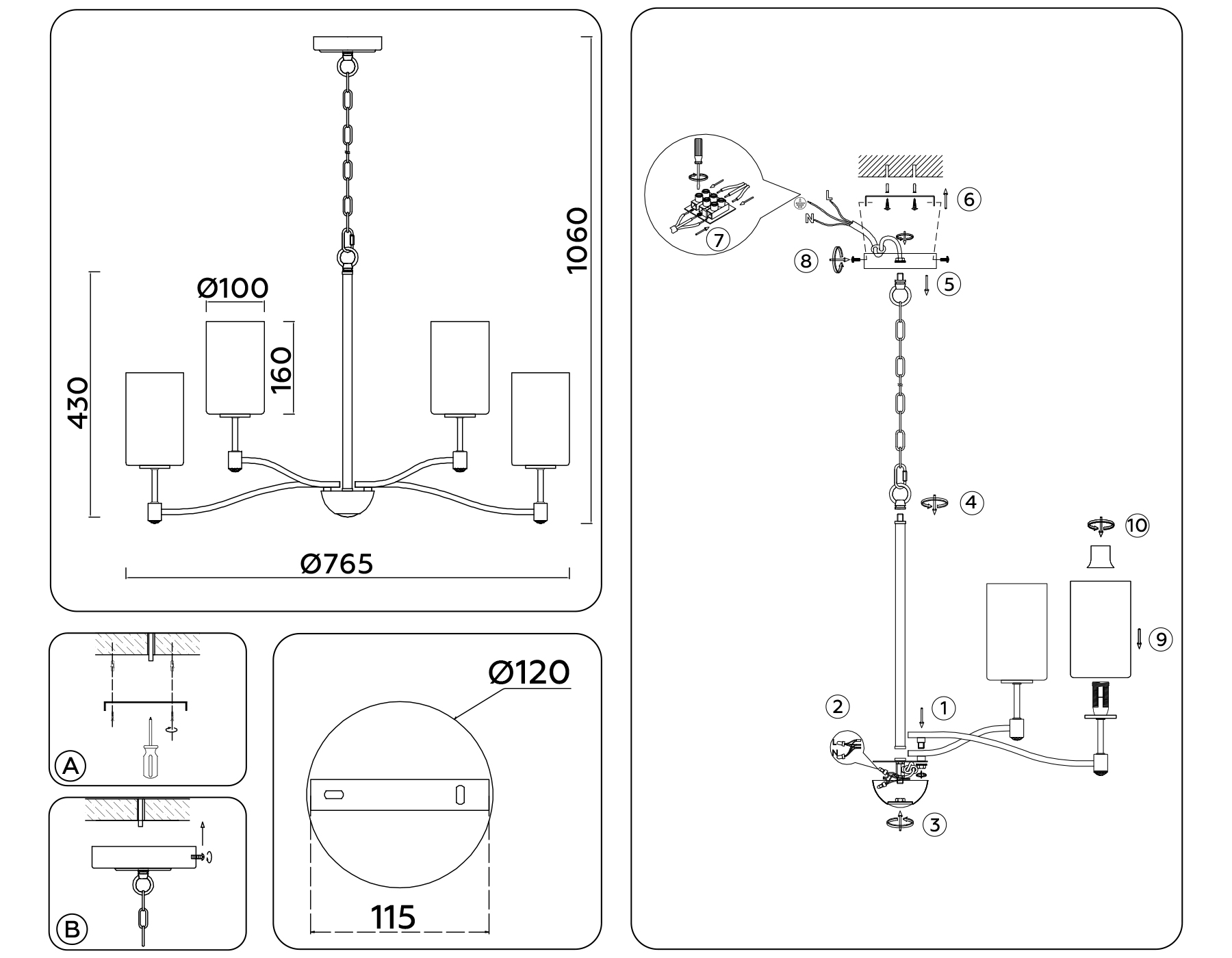 ?Способ крепления и установки люстры.