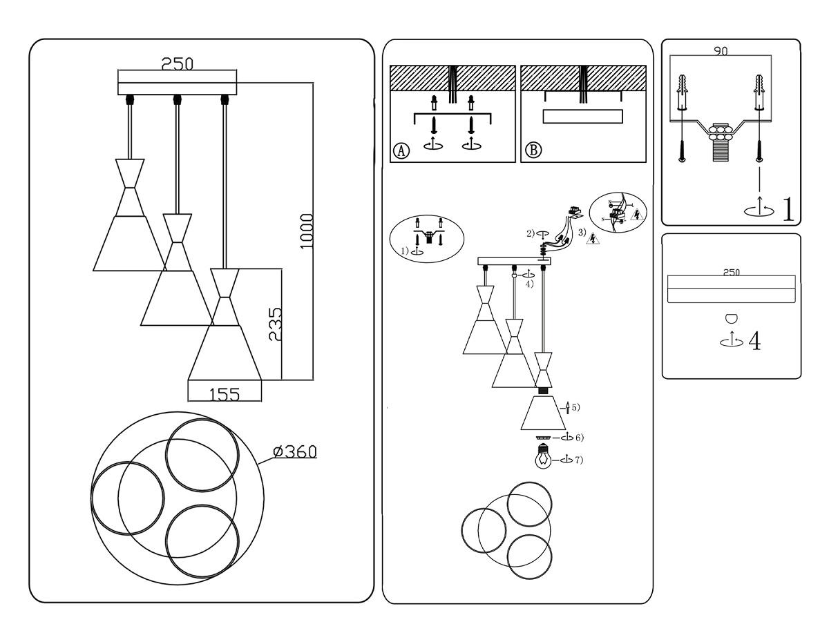 ?Способ крепления и установки люстры.