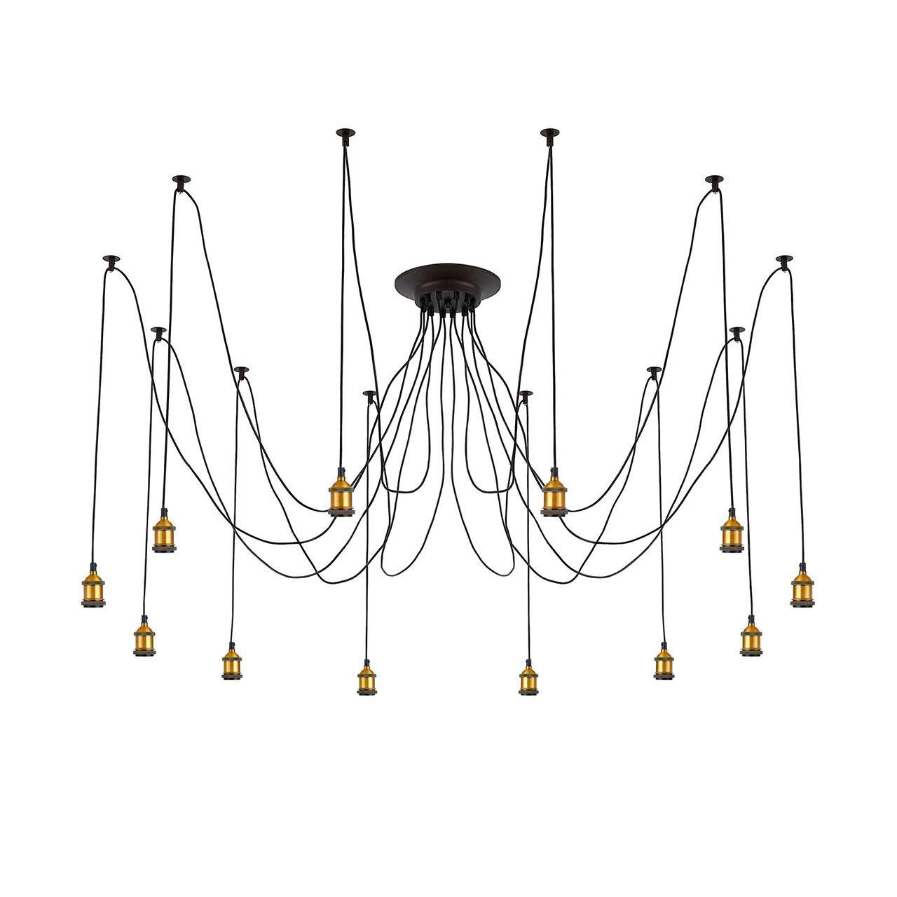 Для данного светильника Вам понадобится 12 ламп накаливания с цоколем Е27, которые осветят помещение площадью целых 50 кв.м, благодаря отсутствию на них плафонов.