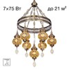 В изделии используются 7 ламп с цоколем Е27, максимальной мощностью для ламп накаливания 75Вт. Универсальное крепление на крючок делает люстру идеальной для любых типов потолков, включая натяжные.