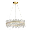 Металлическое основание подвесной люстры окрашено в цвет золота. Светильник декорирован трубочками из прозрачного стекла. Светодиодные источники закрыты прозрачным акрилом.