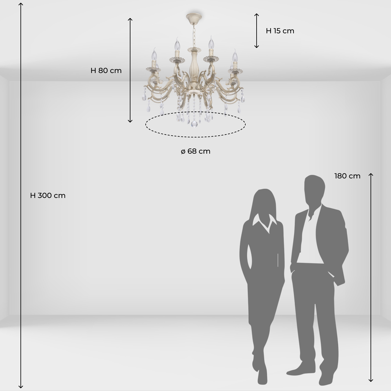 источник света – 8 ламп по 60 Вт с цоколем Е14;
