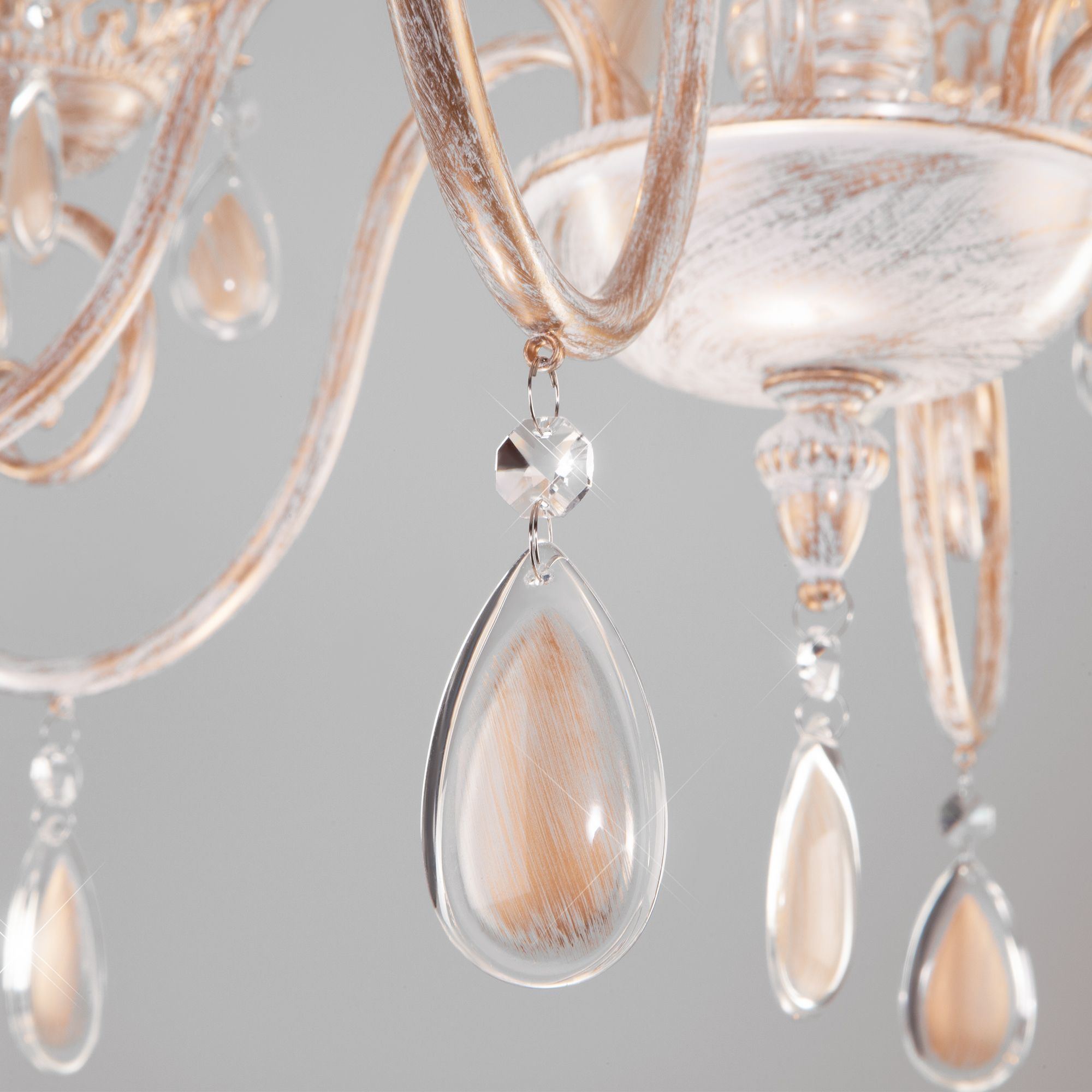 Классическая хрустальная люстра на 6 рожков в цвете белый с золотом преобразит потолочное пространство и создаст в вашем помещении комфортное полноценное освещение на площади 29 м кв.