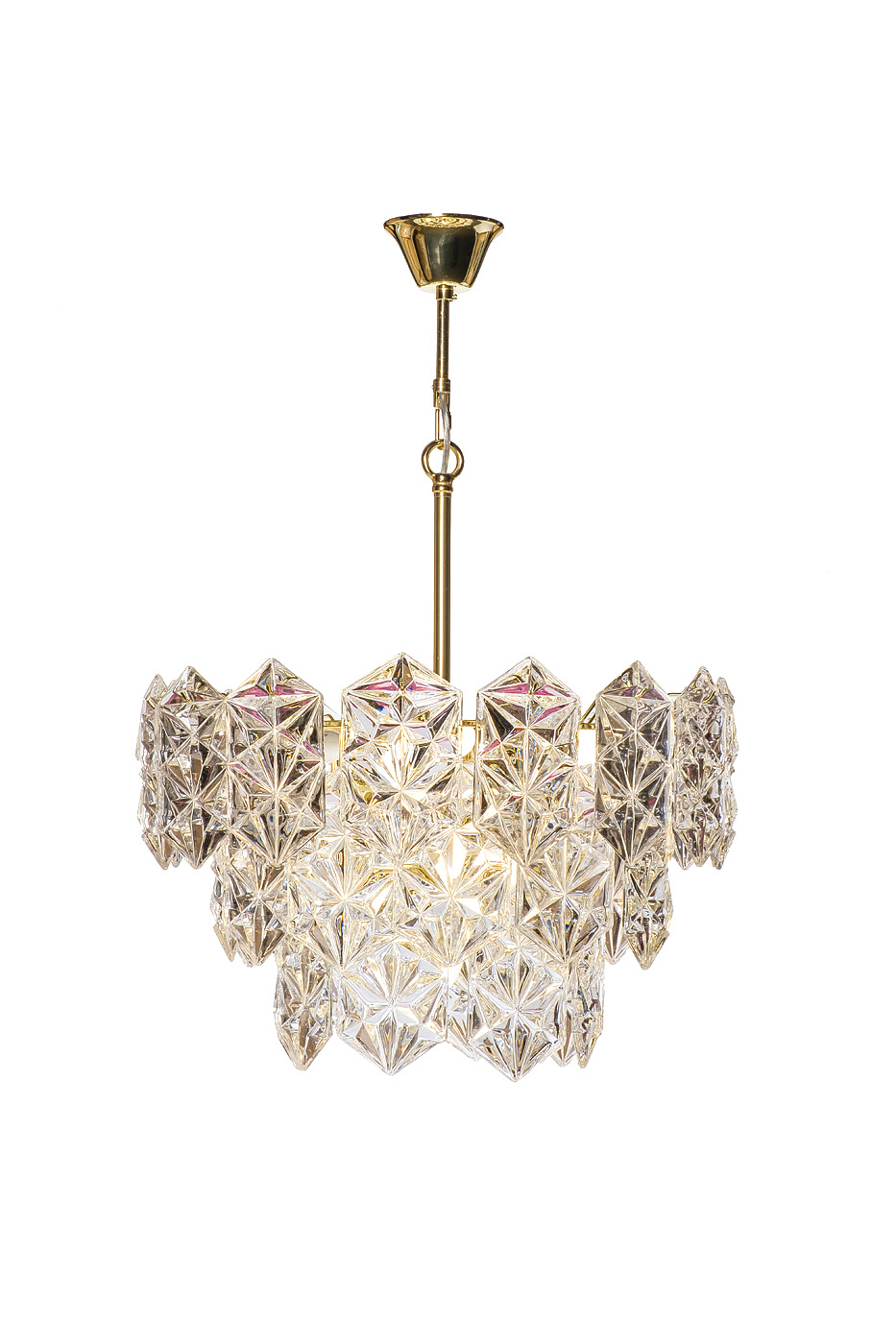 овременная потолочная люстра TENDER в стиле ар-деко выполнена из множества стеклянных элементов в виде кристаллов, которые преломляют свет и создают бесподобный эффект мягкого сияния. Визуально дизайнерская люстра с подвесками напоминает купол, который скрывает лампы и мягко рассеивает свет, создавая уютную атмосферу в помещении. Данная модель легко справляется со своими основными функциями и декоративными задачами за счет блеска латуни и легкости стекла. Если вам нужна красивая, надежная стеклянная люстра, дизайн которой будет актуальным годами, обратите внимание на TENDER. Эстетика и качество в этом светильнике – на высоте! Рекомендованная площадь освещения - 16-22 м2