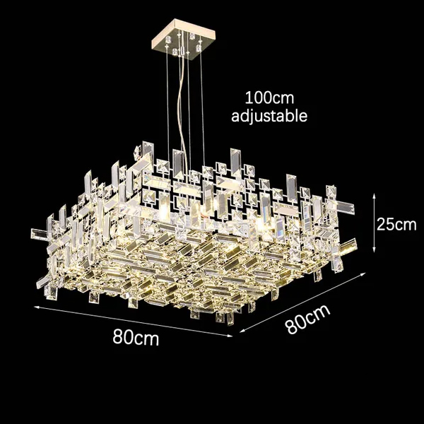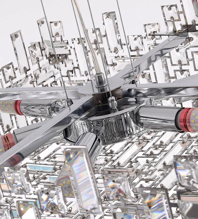 Люстра Delight Collection P7838-W80 chrome с плафоном из множества прямоугольных и квадратных прозрачных кристаллов на металлическом каркасе. Основание из хромированного металла.
