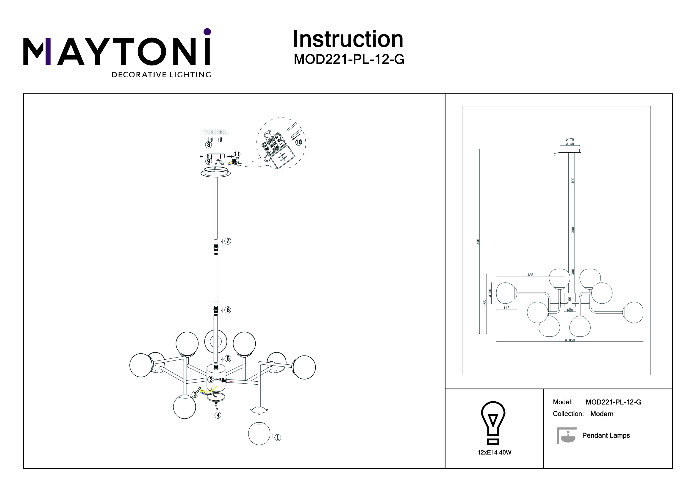 Подвесная люстра Maytoni Erich MOD221-PL-12-G в Альметьевске