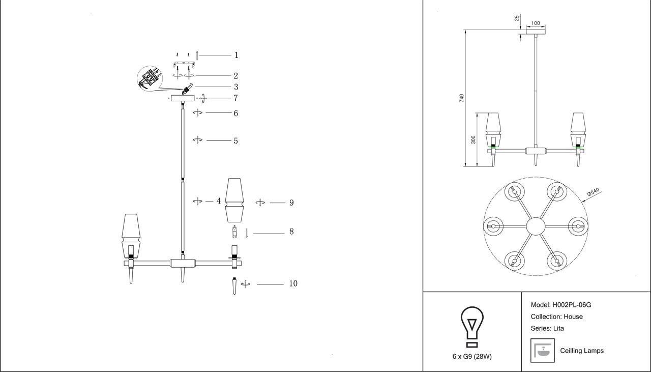 - Количество ламп: 6 шт