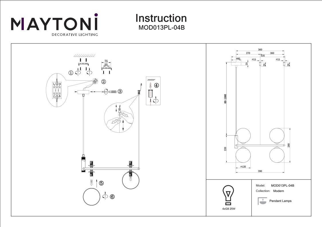 - Количество плафонов: 4