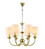 Элегантная люстра с каркасом из золота и шестью абажурами белого цвета. Благодаря изящному дизайну эта люстра добавит стильный акцент в ваш интерьер. В серии есть бра и люстры с разным количеством плафонов.