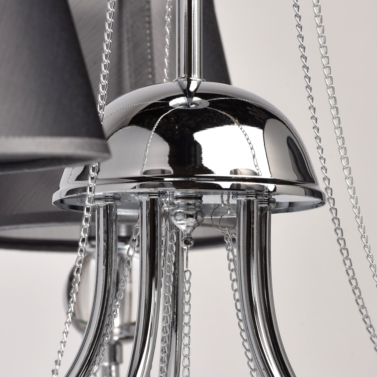 игра фактур – глянцевое хромированное основание создает контраст с сатиновым блеском абажуров из органзы;