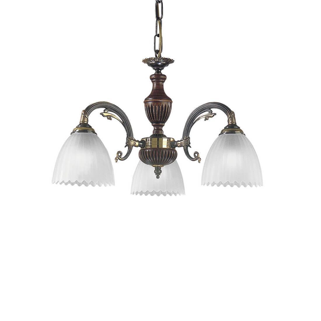 Подвесная люстра Reccagni Angelo L 3510/3 Итальянского производсва – уникальное сочетание высокого качества и удивительных фактур. Этот светильник Классического стиля хорошо подойдет Для спальни и придаст помещению мягкий и приятный свет. Плафоны белые из стекла. Арматура бронза из металла. Кол-во ламп - 3шт. Общая мощность 180W