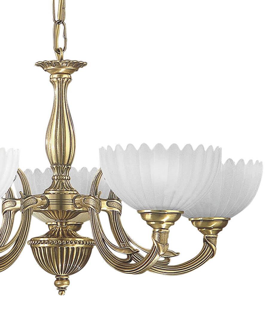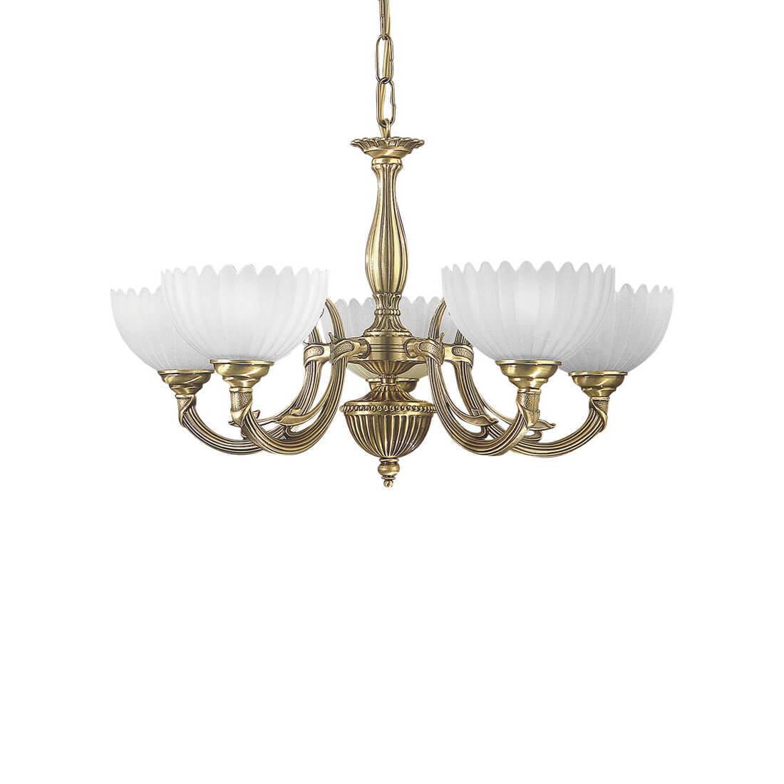 Подвесная люстра Reccagni Angelo L 3620/5 Итальянского производсва – уникальное сочетание высокого качества и удивительных фактур. Этот светильник Классического стиля хорошо подойдет Для гостиной и придаст помещению мягкий и приятный свет. Плафоны белые из стекла. Арматура бронза из металла. Кол-во ламп - 5шт. Общая мощность 300W