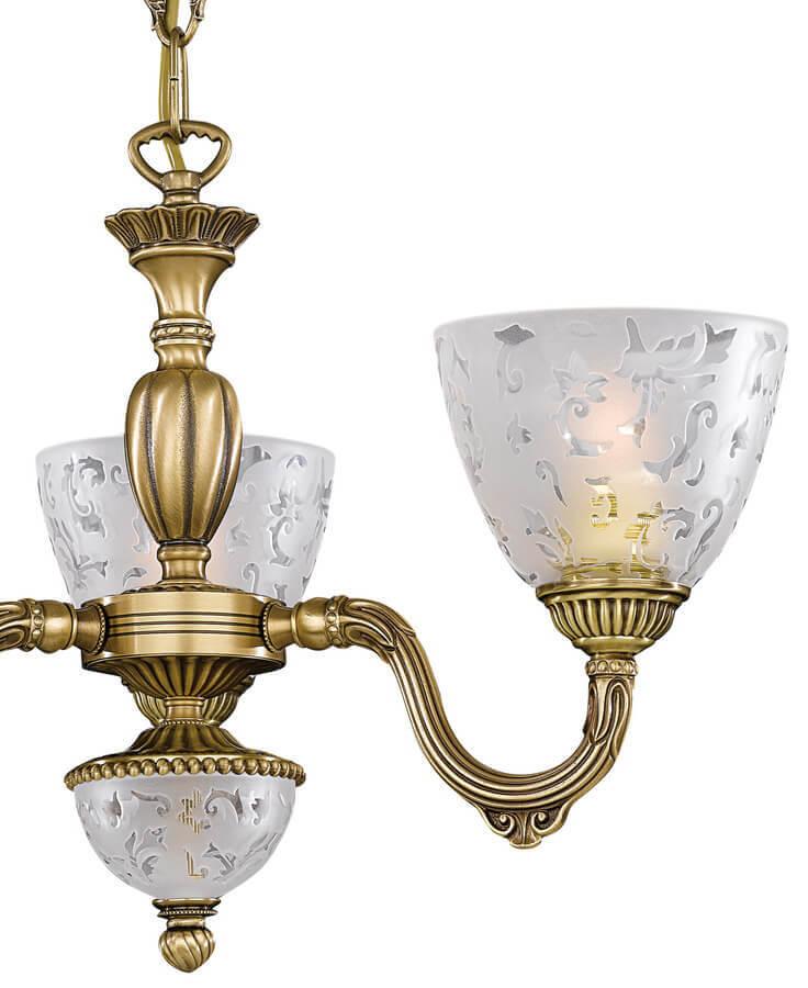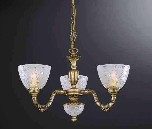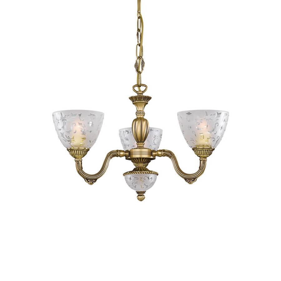 Подвесная люстра Reccagni Angelo L 6252/3 Итальянского производсва – лучшее соотношение цена-качество. Этот светильник Классического стиля хорошо подойдет Для спальни и придаст помещению мягкий и приятный свет. Плафоны белые из стекла. Арматура бронза из металла. Кол-во ламп - 3шт. Общая мощность 180W