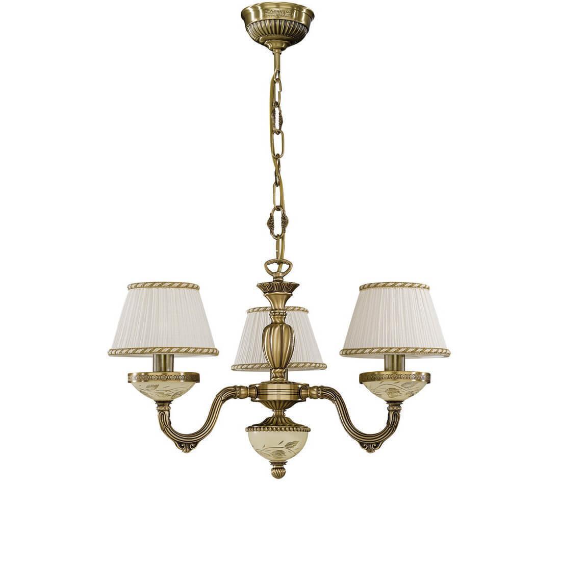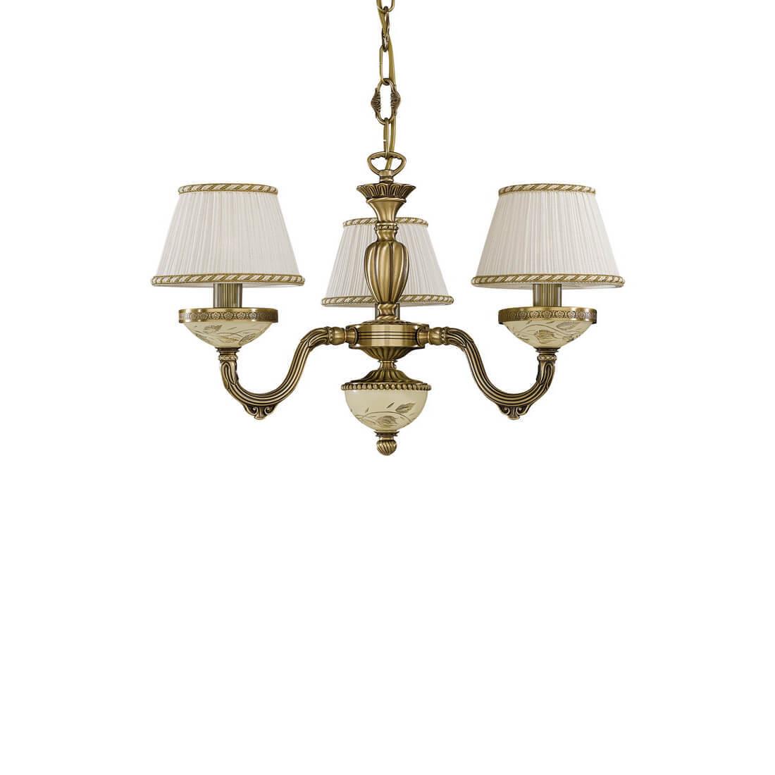 Подвесная люстра Reccagni Angelo L 6422/3 Итальянского производсва – лучшее соотношение цена-качество. Этот светильник Классического стиля хорошо подойдет Для спальни и придаст помещению мягкий и приятный свет. Плафоны белые из ткани. Арматура бронза из металла. Кол-во ламп - 3шт. Общая мощность 180W