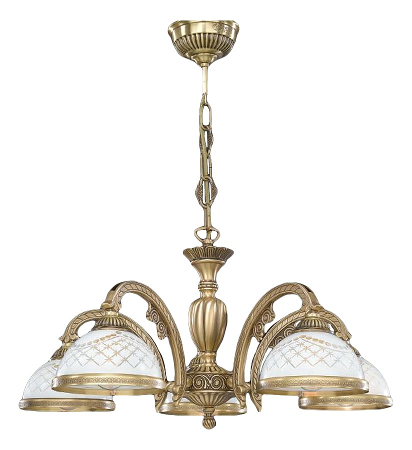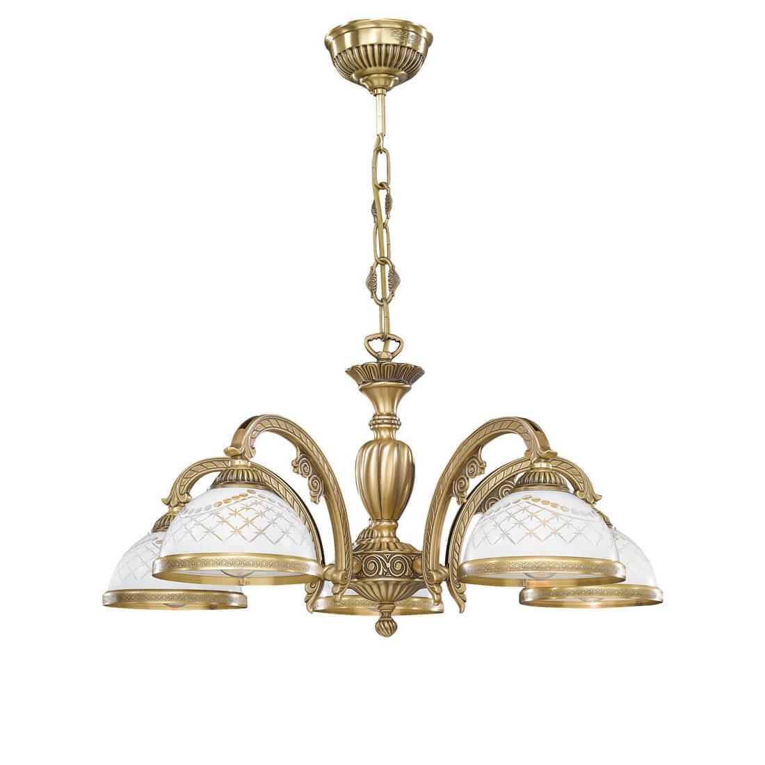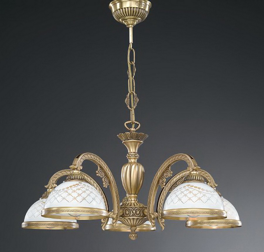 Подвесная люстра Reccagni Angelo L 7002/5 Итальянского производсва – уникальное сочетание высокого качества и удивительных фактур. Этот светильник Классического стиля хорошо подойдет Для гостиной и придаст помещению мягкий и приятный свет. Плафоны белые из стекла. Арматура бронза из металла. Кол-во ламп - 5шт. Общая мощность 300W