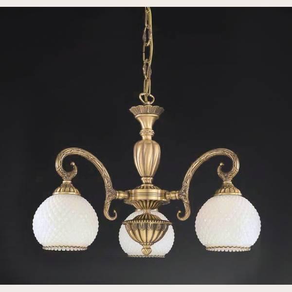 Подвесная люстра Reccagni Angelo L 8400/3 Итальянского производсва – лучшее соотношение цена-качество. Этот светильник Классического стиля хорошо подойдет Для гостиной и придаст помещению мягкий и приятный свет. Плафоны белые из стекла. Арматура бронза из металла. Кол-во ламп - 3шт. Общая мощность 180W