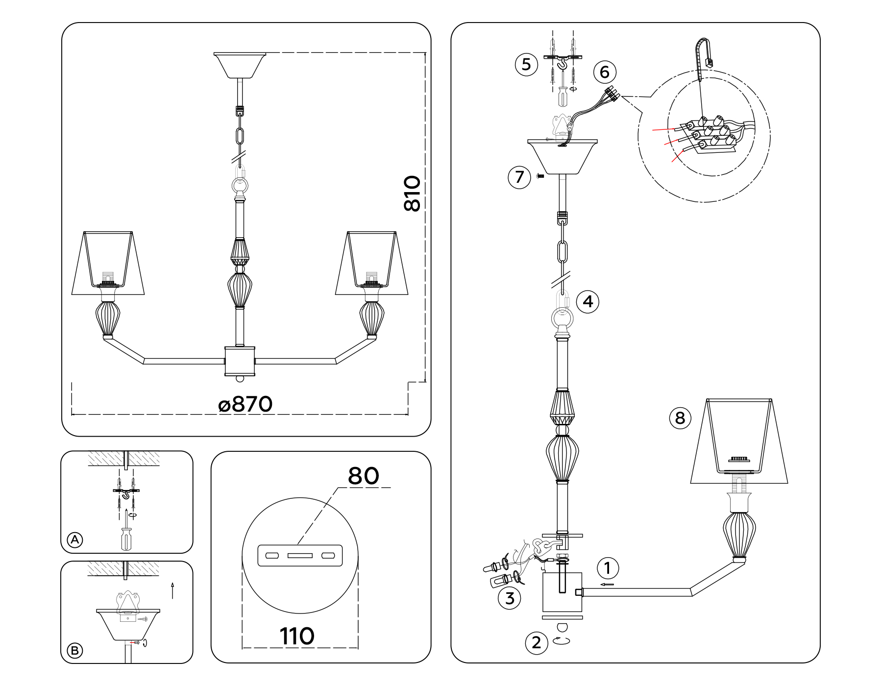 ?Способ крепления и установки люстры.