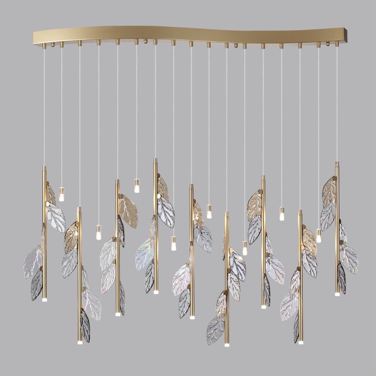 Красота кружащихся в воздухе осенних листьев застыла в дизайне линии светильников Listva. Изящный потолочный светильник станет идеальным украшением обеденной зоны. Декоративные листья выполнены вручную в точности по эскизам дизайнера и имеют четыре оттенка - коньячный, дымчатый, прозрачный и с эффектом бензинового градиента. Потолочную композицию можно регулировать по высоте благодаря тросам и создавать уникальную форму светильника. Одиночный подвесной светильник оставляется с двумя вариантами потолочного крепежа в комплекте - встраиваемым и накладным.