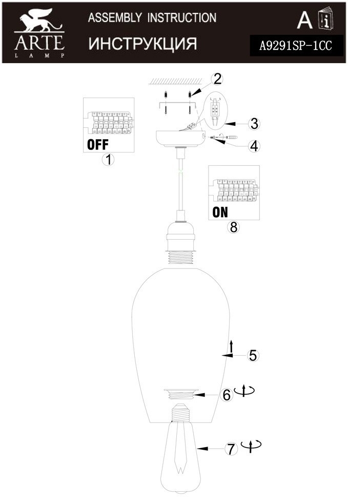 Подвесной светильник Arte Lamp A9291SP-1CC в Альметьевске