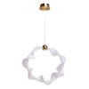 Металлическое основание подвеса гальванизировано в цвет бронзы. Светодиодный источник света закрыт белым матовым акрилом и оригинальным плафоном в виде волны. Волна плафона выполнена из акрила ячеечной структуры.