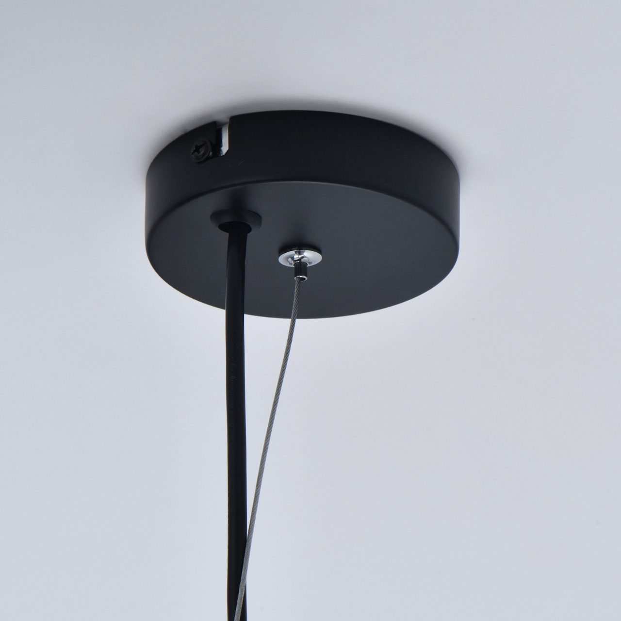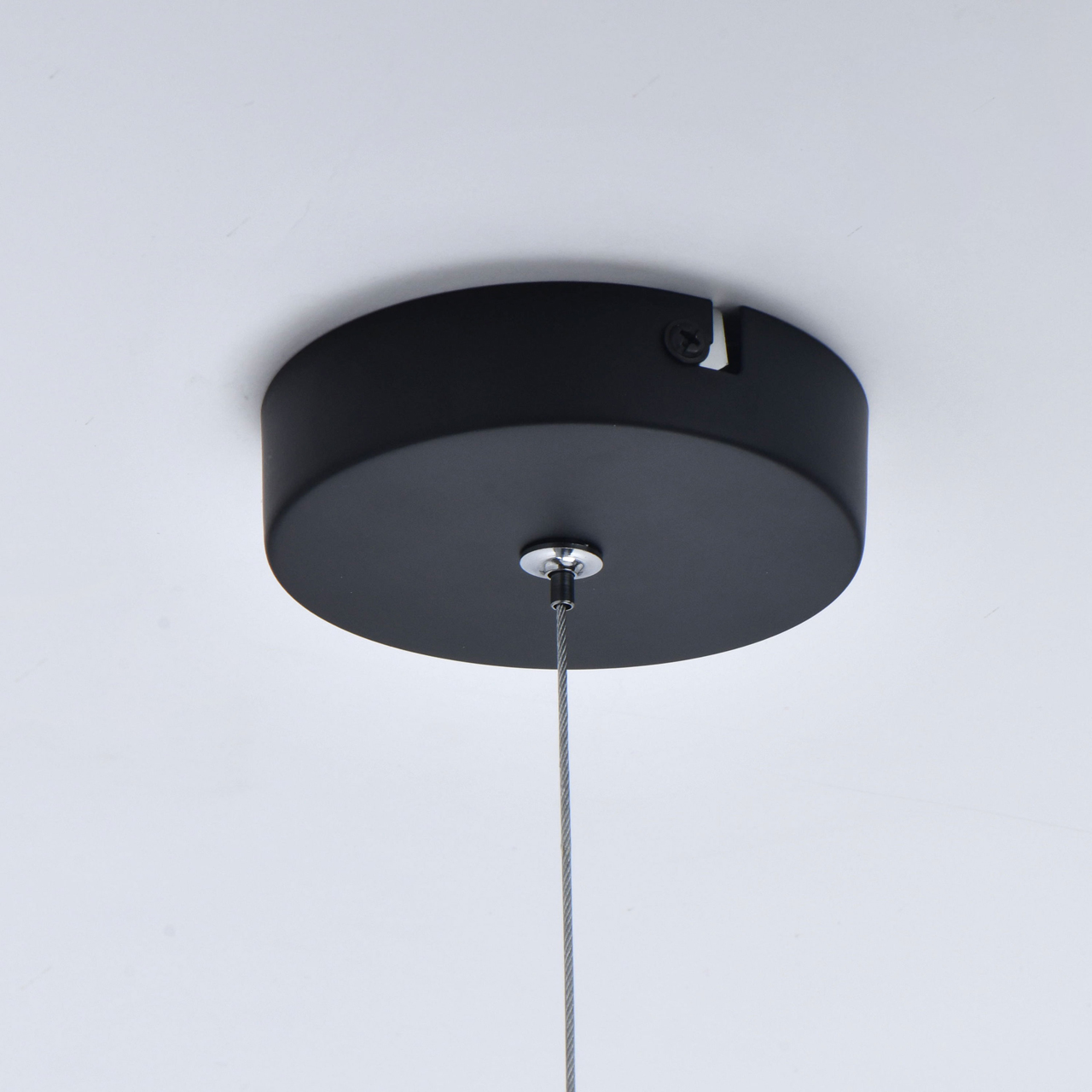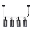 На парящей планке расположены 4 подвеса из стекла цвета антрацита. Основание из металла окрашено в черный цвет. К нему крепятся черные кожаные ремешки, которые и удерживают на весу источники освещения. Свет получается мягким, приглушенным, создает умиротворяющую, романтичную атмосферу. Модель идеально подходит для создания акцентов на конкретных зонах: подсветки обеденного стола, барной стойки, зоны отдыха.