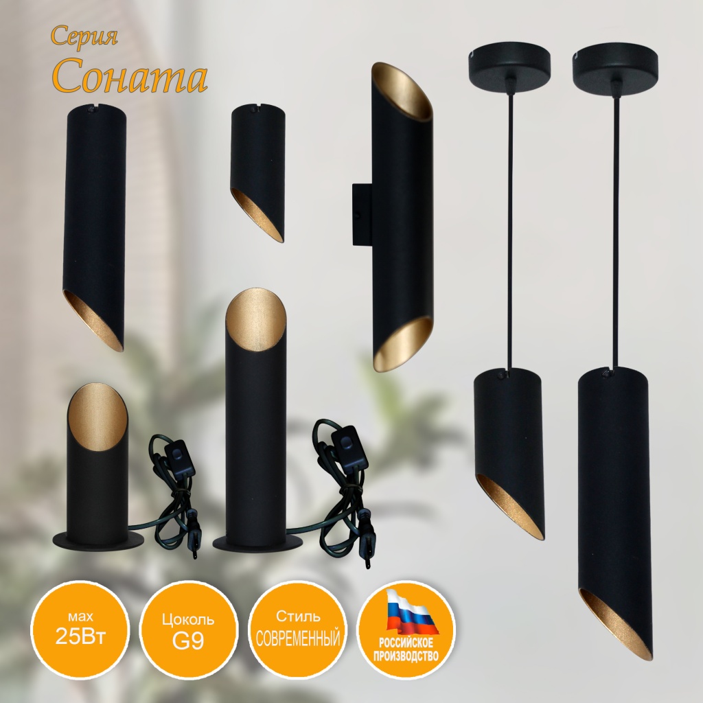 - Цвет плафонов: Черный