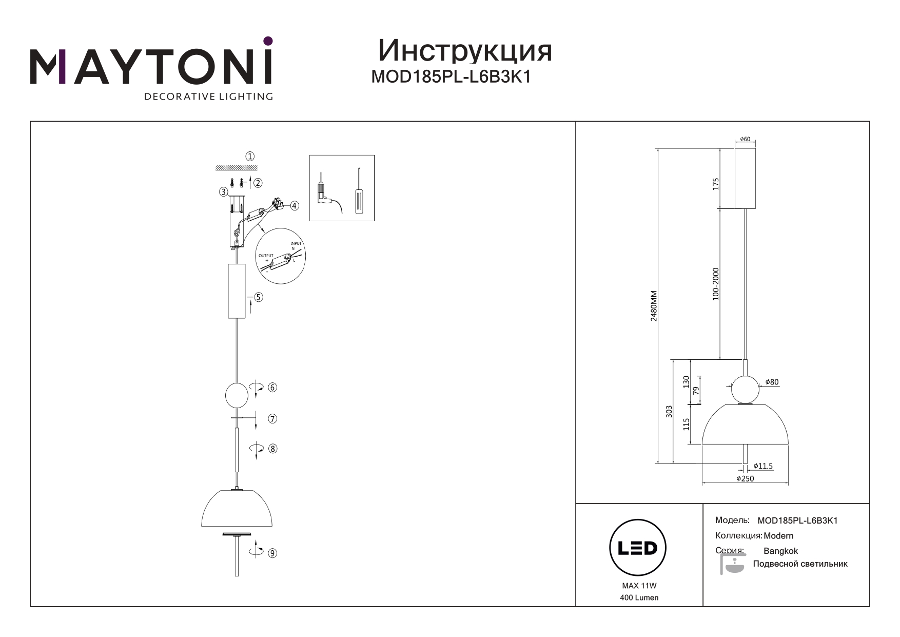Данную модель MOD185PL-L6B3K1 с быстрой доставкой спешите купить по цене 15 490 ₽ в магазине 220svet.ru