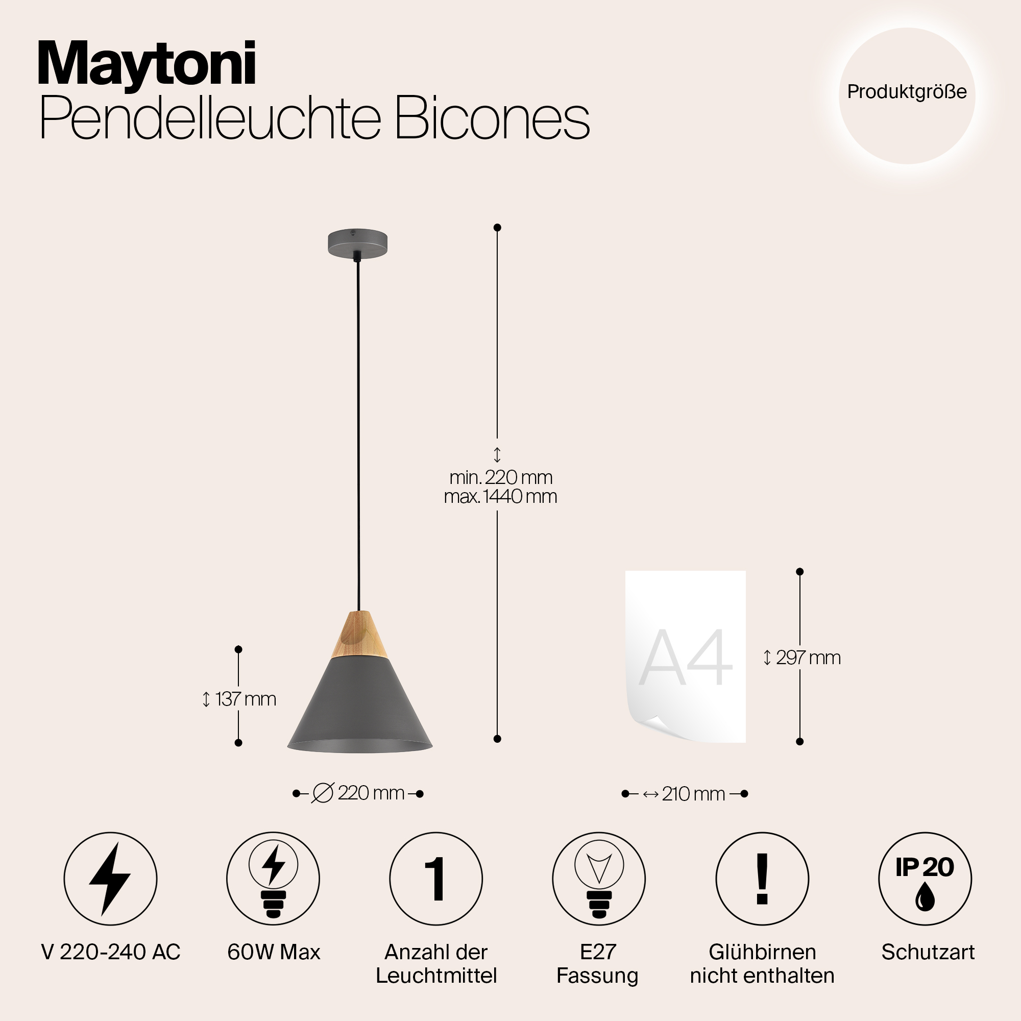 - Форма плафона: Конусный
