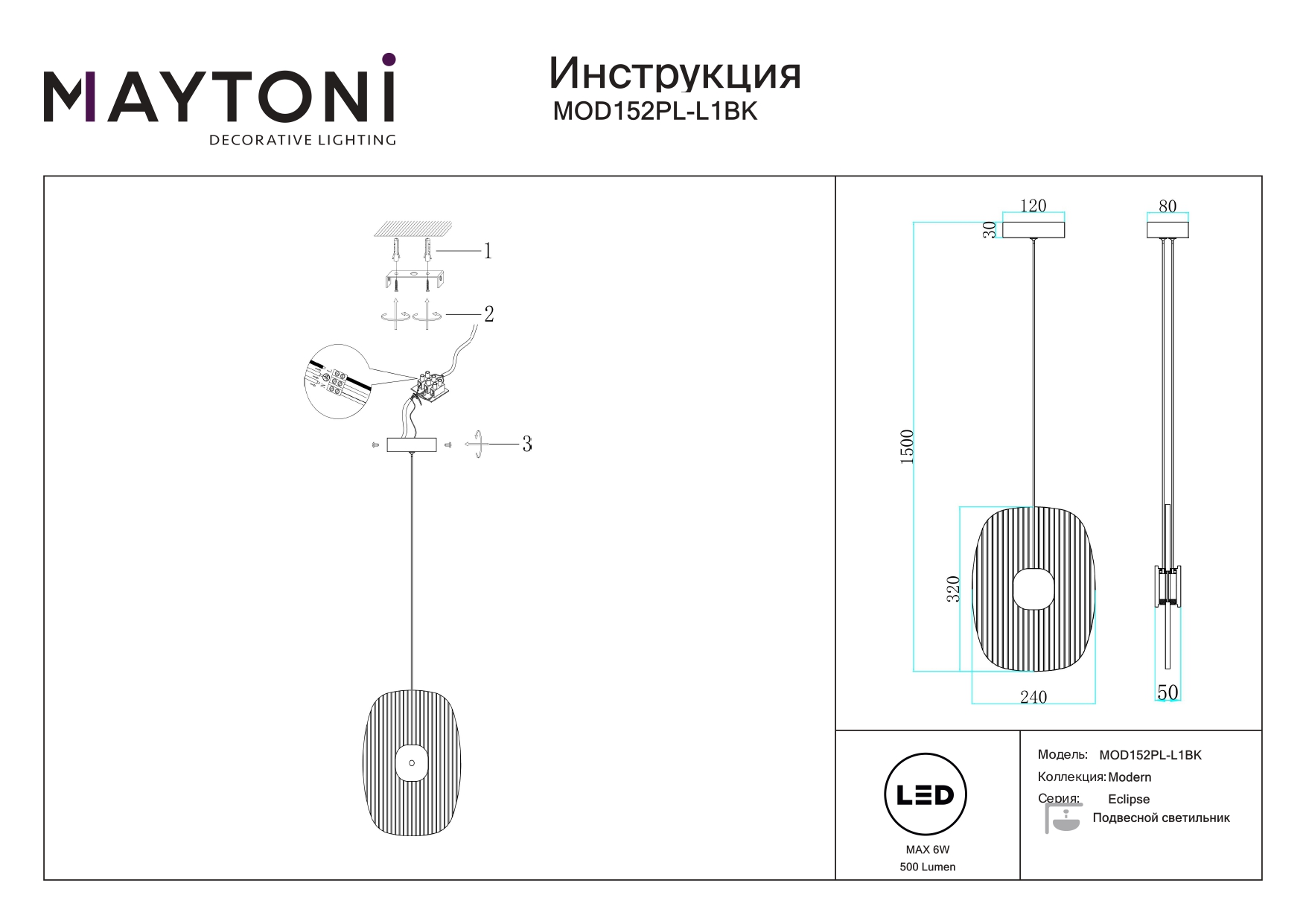 Данную модель MOD152PL-L1BK с быстрой доставкой спешите купить по цене 16 990 ₽ в магазине 220svet.ru