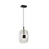 Металлическая арматура. Цвет – матовый черный. Декор – литое стекло. Фактурный орнамент. Высота подвесного светильника регулируется. LED-источник света.