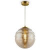 Арматура светильника изготовлена из металла в оттенках латуни. Ее мягко оттеняет янтарный цвет стеклянного фактурного плафона, выполненного в форме шара. Подчеркнутый рельеф плафона добавляет светильникам серии многомерности и объема. Благодаря выраженной фактуре свет мягко преломляется и рассеивается. Цветовые решения коллекции: дымчатый или янтарный на выбор. Размеры устройства составляют 250 мм х 1475 мм, что позволяет легко интегрировать его в любое интерьерное пространство. Технической особенностью является регулировка по высоте в диапазоне от 375 мм до 1475 мм. Серия представлена композицией на 3 плафона и одиночными подвесами, которые позволяют организовать комплексное освещение пространства в едином стиле, задействовать как основной, так и зональный свет. Модели, входящие в коллекцию Vinare P074, идеально подойдут для размещения в зоне гостиной, спальни, кабинета или офиса, оформленных в современном стиле, позволяя использовать в тандеме подвесные светильники и потолочные, размещая их на разной высоте. Гарантия на товар составляет 2 года.