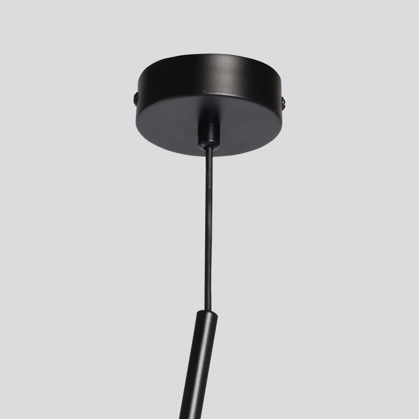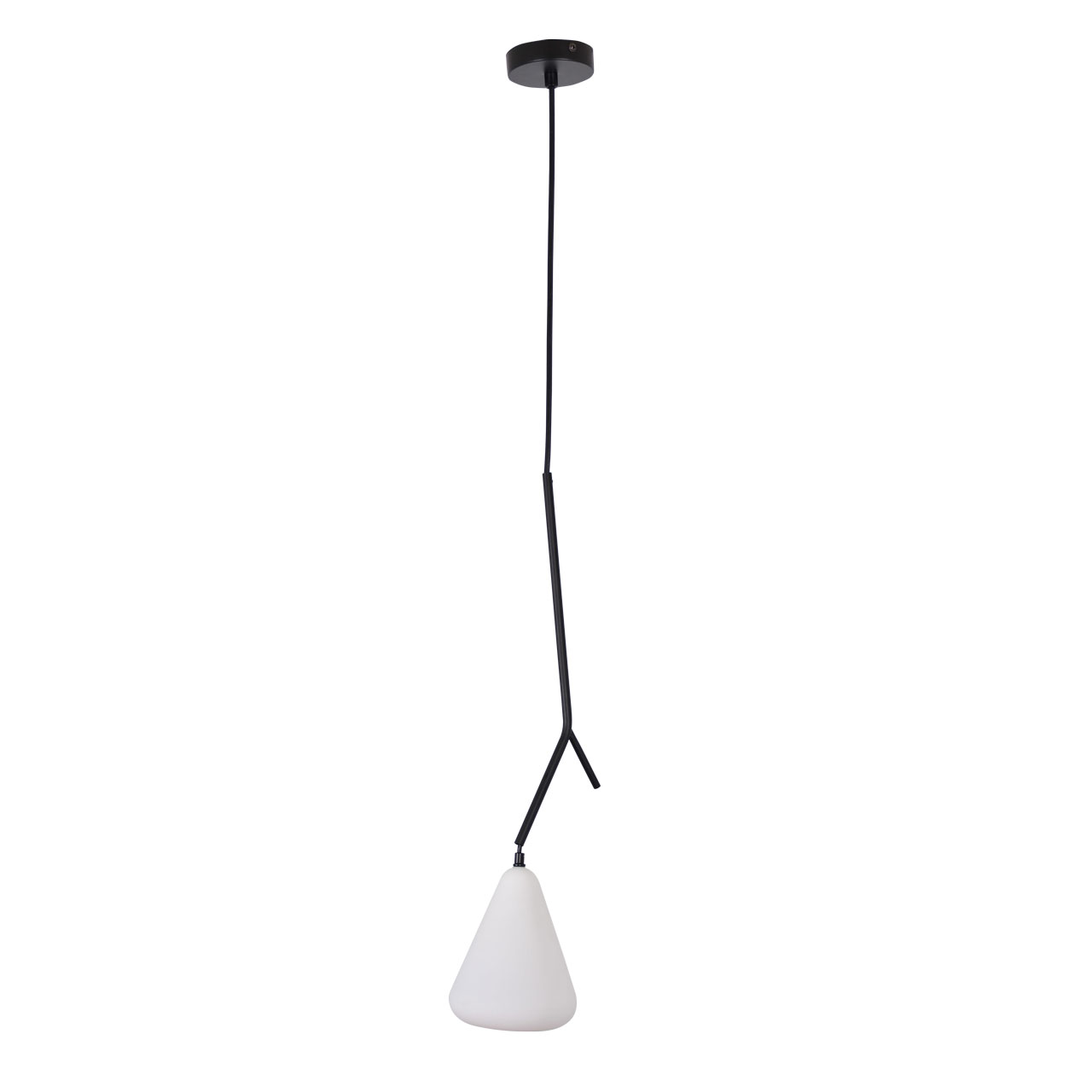 Металлическое основание подвеса окрашено в черный цвет. Стеклянный плафон окрашен в белый цвет с внутренней стороны.