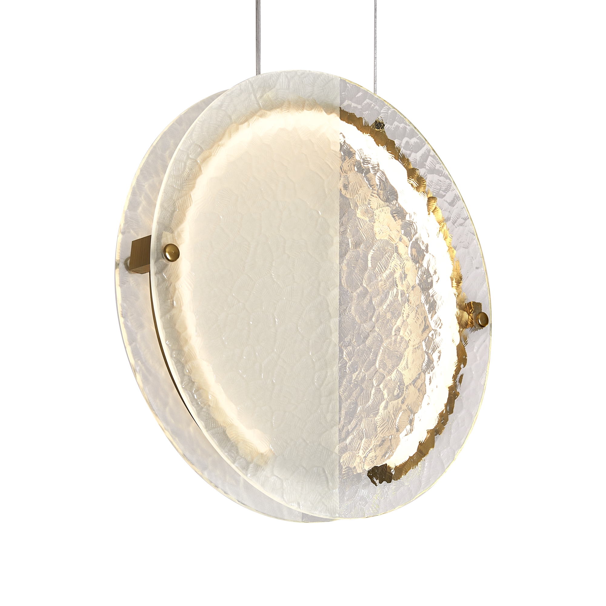 Стеклянные подвесные светильники Lunar с рельефным стеклом в двух цветовых вариантах: коньячном, белом матовым и прозрачным. Две формы плафонов: горизонтальный вытянутый и круглый, напоминающий очертания луны. Арматура — металл латунного цвета. Источник света - LED 3000 K. Дизайн сочетает современные формы с традиционными материалами, создавая эффектное освещение. Рельефное стекло добавляет интересную игру света и тени.