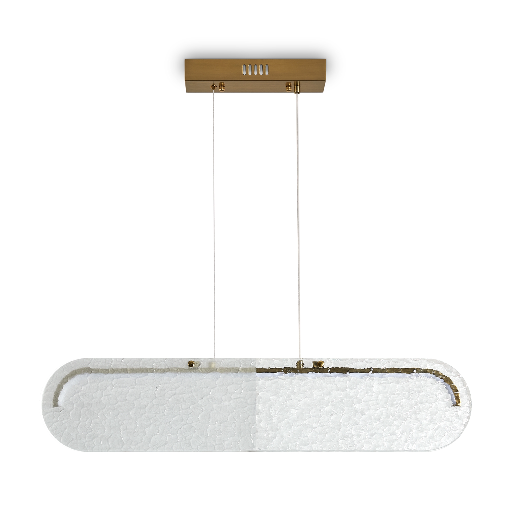 Стеклянные подвесные светильники Lunar с рельефным стеклом в двух цветовых вариантах: коньячном, белом матовым и прозрачным. Две формы плафонов: горизонтальный вытянутый и круглый, напоминающий очертания луны. Арматура — металл латунного цвета. Источник света - LED 3000 K. Дизайн сочетает современные формы с традиционными материалами, создавая эффектное освещение. Рельефное стекло добавляет интересную игру света и тени.
