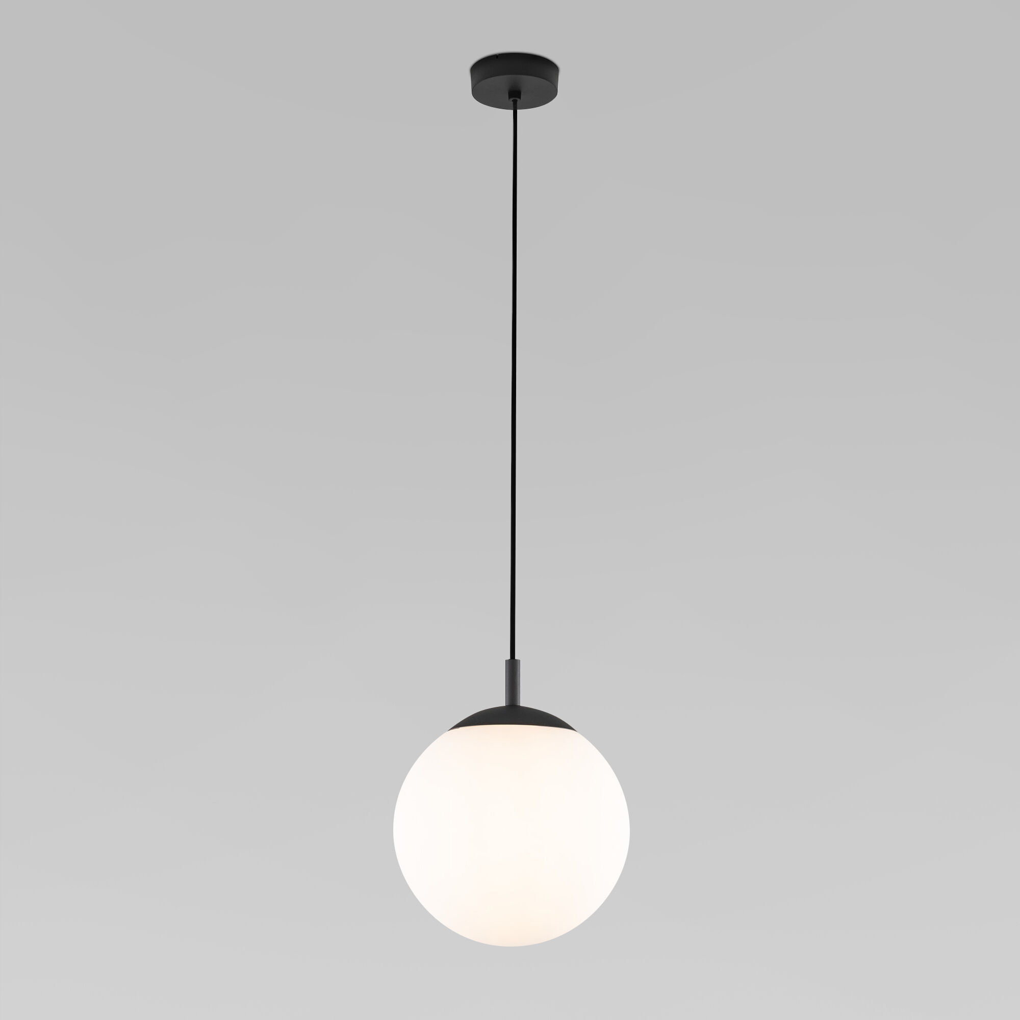 Светильник со стеклянным плафоном в беломом цвете. Подвесной светильник легко устанавливается на любых потолках при помощи монтажной планки.
