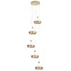 Светодиодный каскадный светильник CL719052 от производителя Citilux относится к коллекции Дуэт выполнен в современном стиле. Корпус металлический, цвет благородное золото. Светильник состоит из круглого основания и пяти подвесных колец. Кольцо - светодиодный модуль, корпус изготовлен из алюминиевого профиля, рассеиватель из оптического полимера. Наличие источников света с двух сторон профиля позволяет равномерно осветить всё помещение. Изделие оснащено встроенным ступенчатым диммером, три уровня яркости – 100-40-15%, управляется обычным настенным выключателем. Мощность 100Вт, цветовая температура 4000К - нейтральный белый свет, без мерцания и пульсаций. Крепление подходит для всех видов потолков, в том числе натяжных, тип крепления – планка , страна бренда Дания . Купить модель CL719052 спешите в интернет магазине 220svet.ru