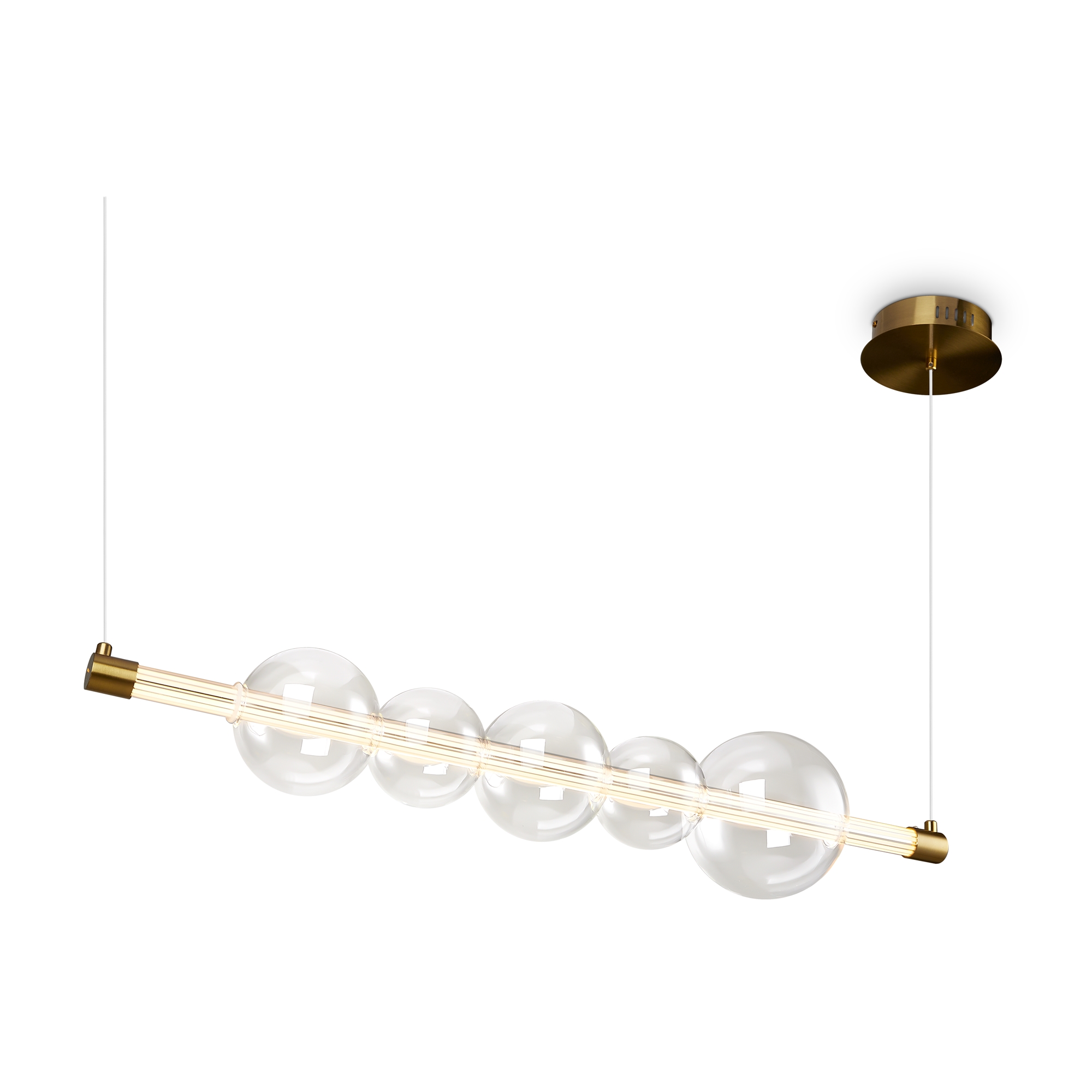Подвесной светодиодный светильник FR5396PL-L11BS от немецкого производителя Maytoni гармонично будет смотреться в вашем интерьере . Материал арматуры металл латуного цвета, материал плафона стекло прозрачного цвета , в светильнике установлен светодиодный элемент мощностью 99W , LED-источник света скрыт в горизонтальной стеклянной трубке, пронизывая ряд декоративных плафонов. Цветовая температура 3000К высоту светильника можно регулировать минимальная 150 мм максимальная -1650мм .Данную модель всегда можете купить в интернет-магазине 220svet.