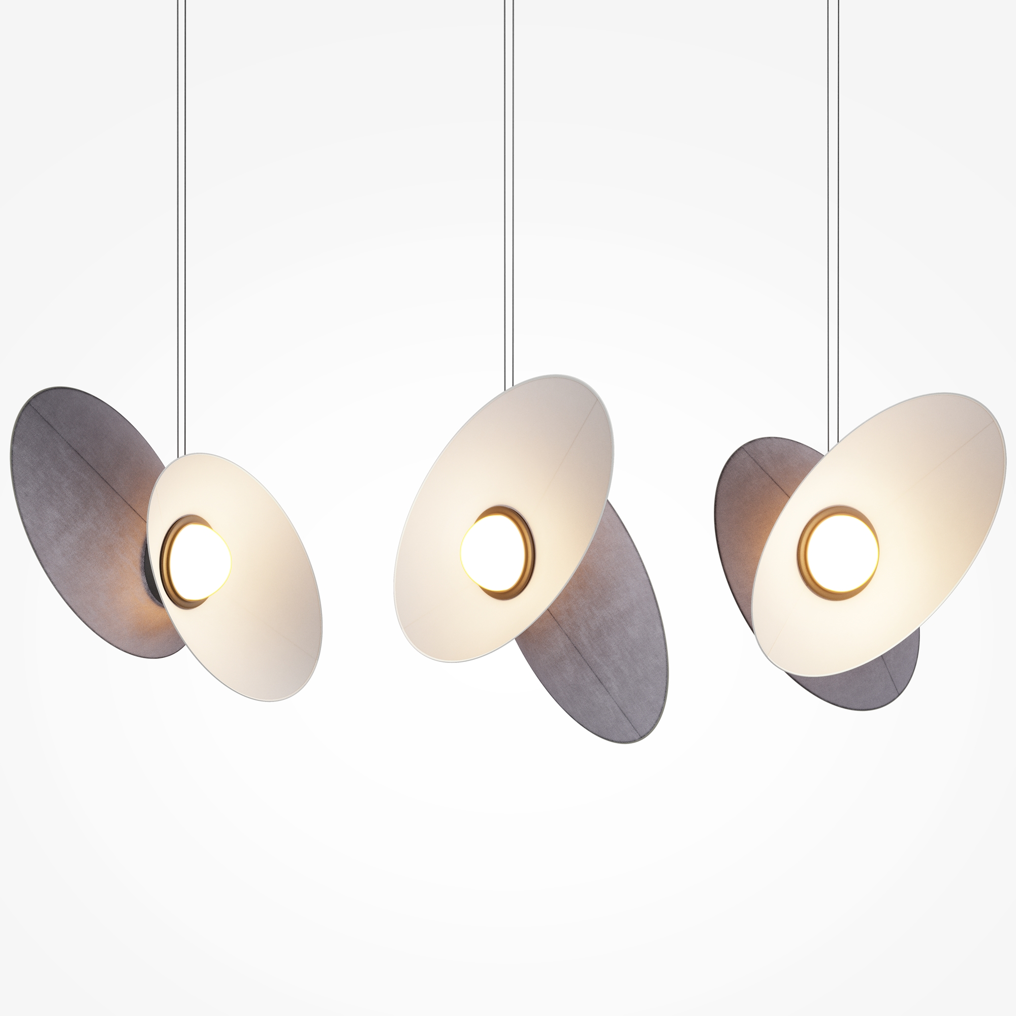 Светильники-трансформеры, управляющие световым сценарием с помощью поворотных тканевых абажуров. Цвет арматуры — черный. Материал арматуры — алюминий. LED-источник света с температурой 3000К, скрытый матовым рассеивателем. Три цветовых решения тканевых абажуров: белый, серый, темно-синий. Возможность изменения дизайна светильника и направления света одним движением. Подвесные модели с регулируемой высотой и проводом 3 метра. Торшер с функцией диммирования, стоит только нажать на выключатель на проводе. Прекрасно сочетаются друг с другом для создания уникальных композиций.