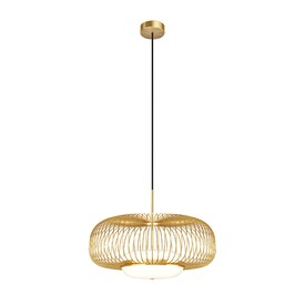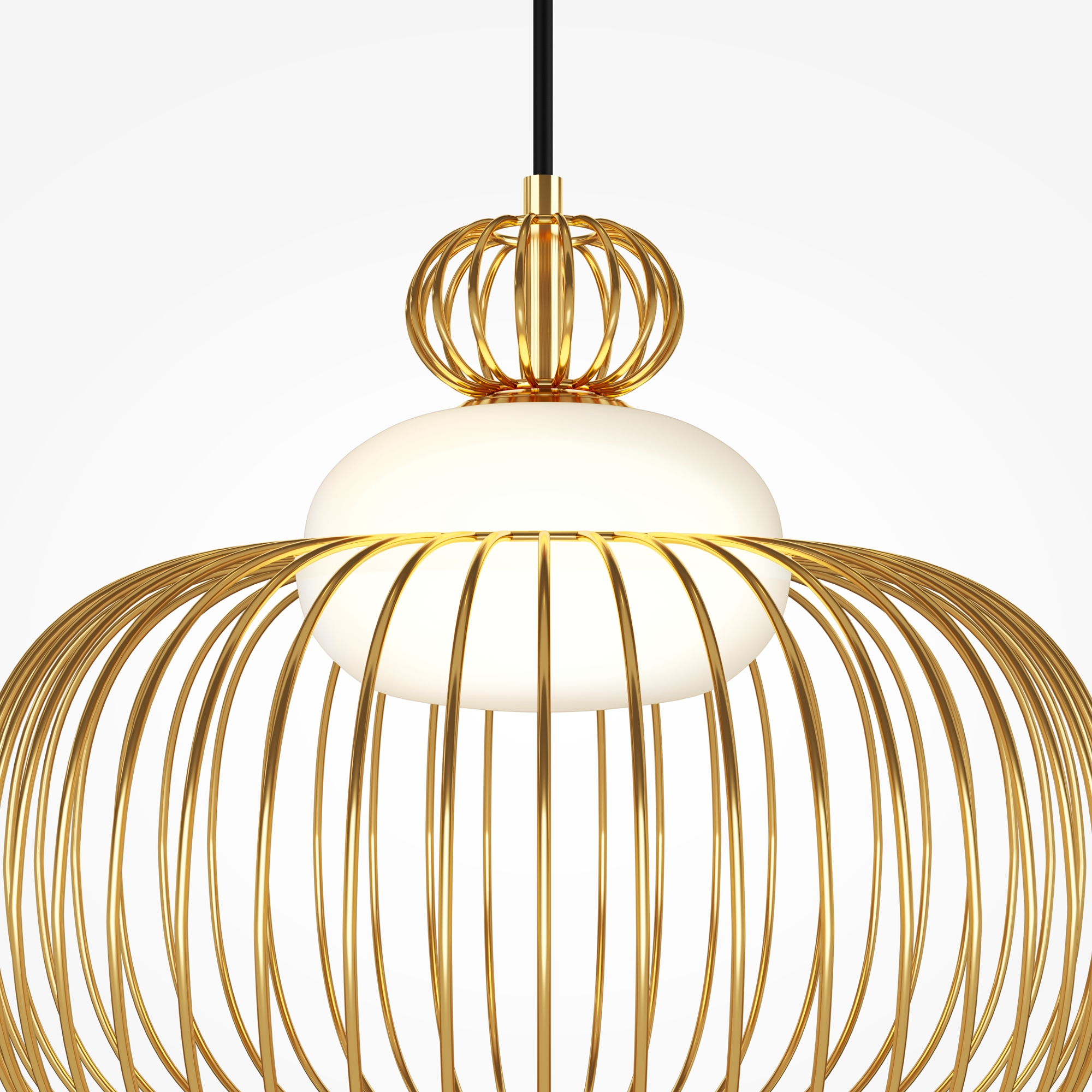 Цвет арматуры — латунь. Материал арматуры — металл. Абажур — каркас из проволоки, стекло. Оригинальный дизайн с эффектом левитации. Стеклянный рассеиватель со специальным выступом для крепления проволочного плафона. Два типа подвесных светильников: компактные со сменными лампами и крупный с LED-модулем для двунаправленного освещения. Провод длиной 3 метра для высоких потолков. Регулируемая высота подвеса. Универсальный дизайн для неоклассики, эклектики и фьюжн.