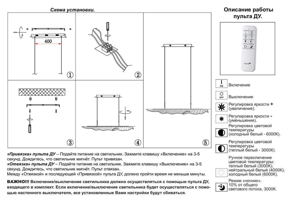 - Режим работы: Регулировка яркости свечения, Регулировка цветовой температуры