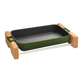 ПРЯМОУГОЛЬНОЕ БЛЮДО 26Х40СМ. И ДЕРЕВЯННАЯ ПОДСТАВКА ДЛЯ СЕРВИРОВКИ ЗЕЛЕНОГО ЦВЕТА LAVA