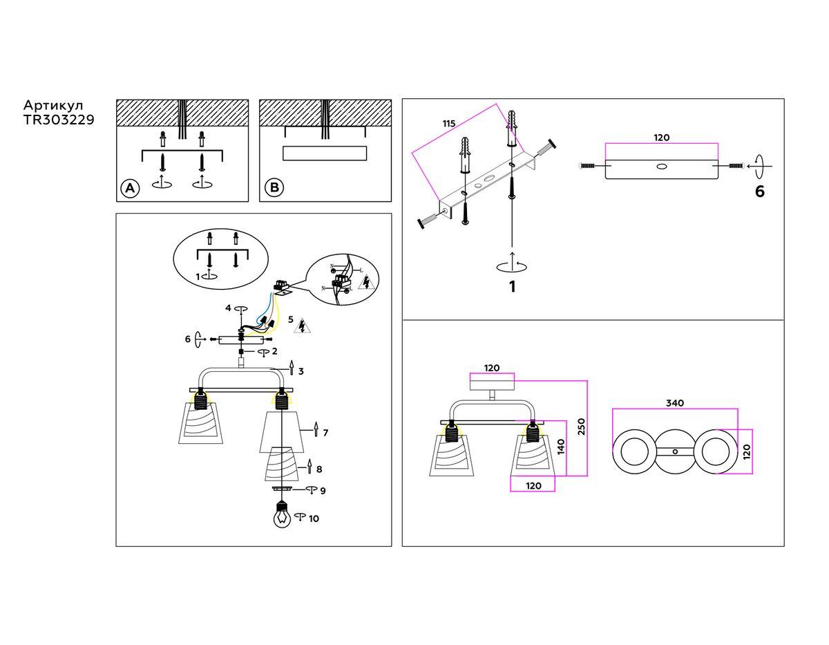 - Место установки: на потолок