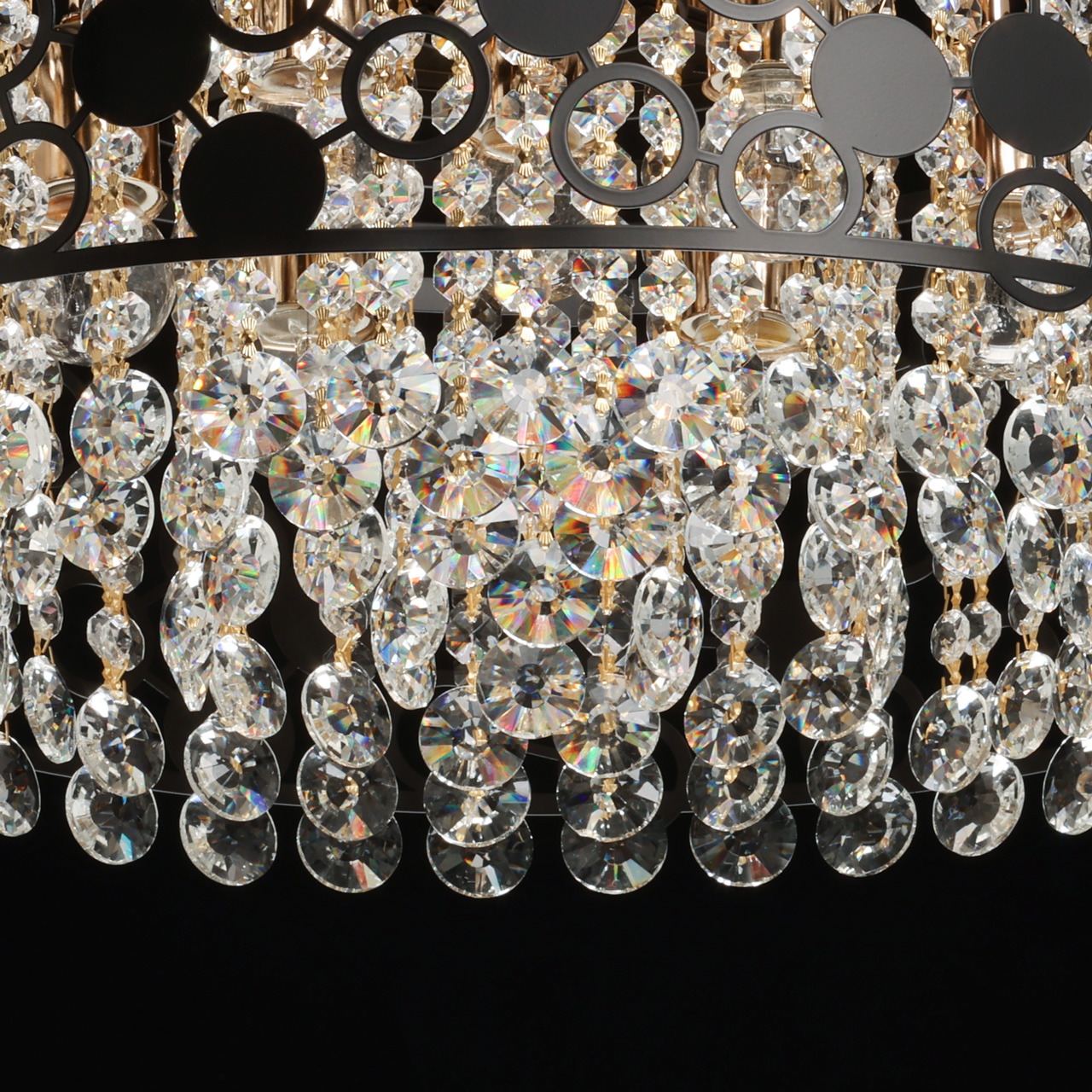 Привлекательная модель 111018405 от немецкого производителя De City относится к коллекции -Бриз, изумительно подойдет для установки в спальне в стиле арт-деко, в люстре 7 лампочек с цоколем Е27 площадь освещения помещения 21 кв.м. Материал арматуры металл черного цвета основание окрашено в золотой цвет , плафон металл черного цвета, люстра крепится на планку украшена хрустальными подвесами. Данную модель всегда можете купить в интернет-магазине 220svet.