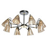 Модная люстра - контрастное сочетание цветов черный и античная бронза.Фактурные плафоны золотистого цвета, закрученные по спирали, создают красивую струящуюся игру света.Винтажный дизайн светильнику придают провода, выведенные наружу.Плафоны, направленные вниз, обеспечивают яркое зональное освещение.Оптимальный по высоте потолочный светильник сохранит пространство комнаты.