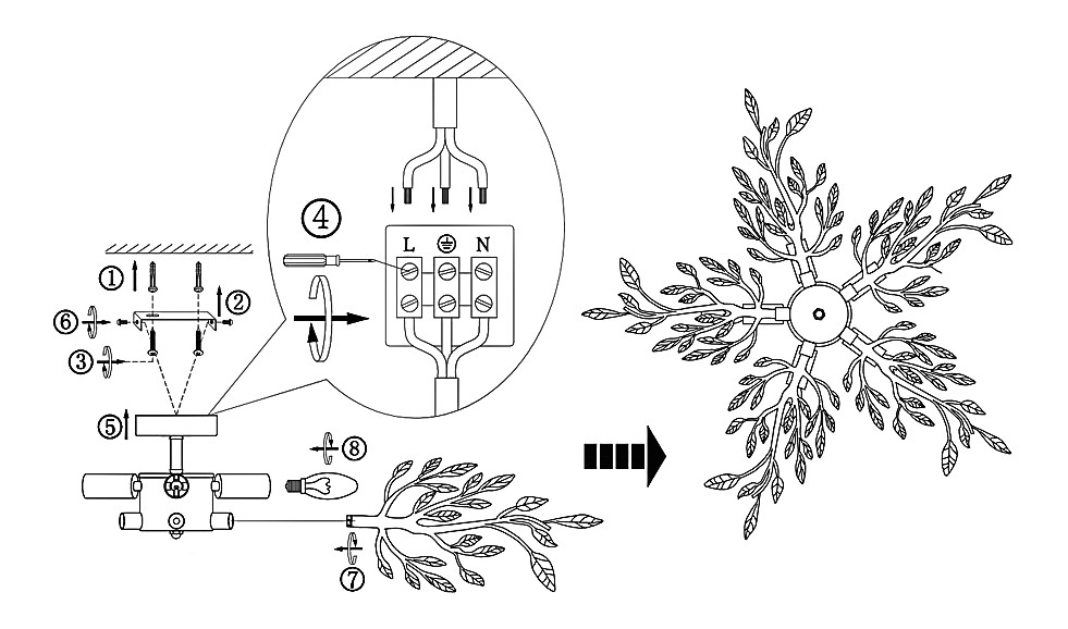 ?Способ крепления и установки люстры.