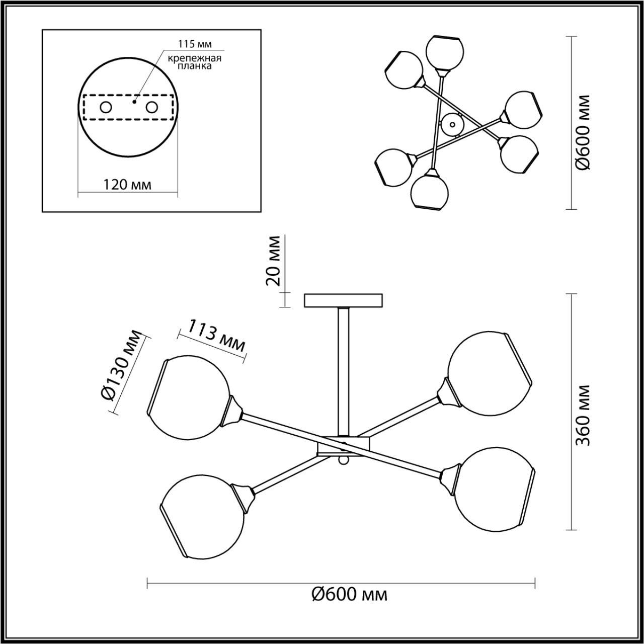- Форма плафона: Шар