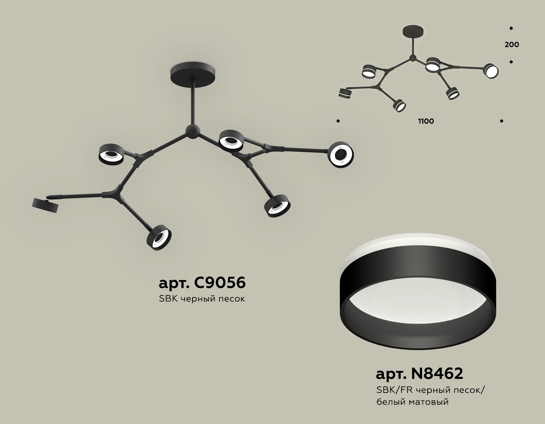 - Цвет плафонов: Черный
