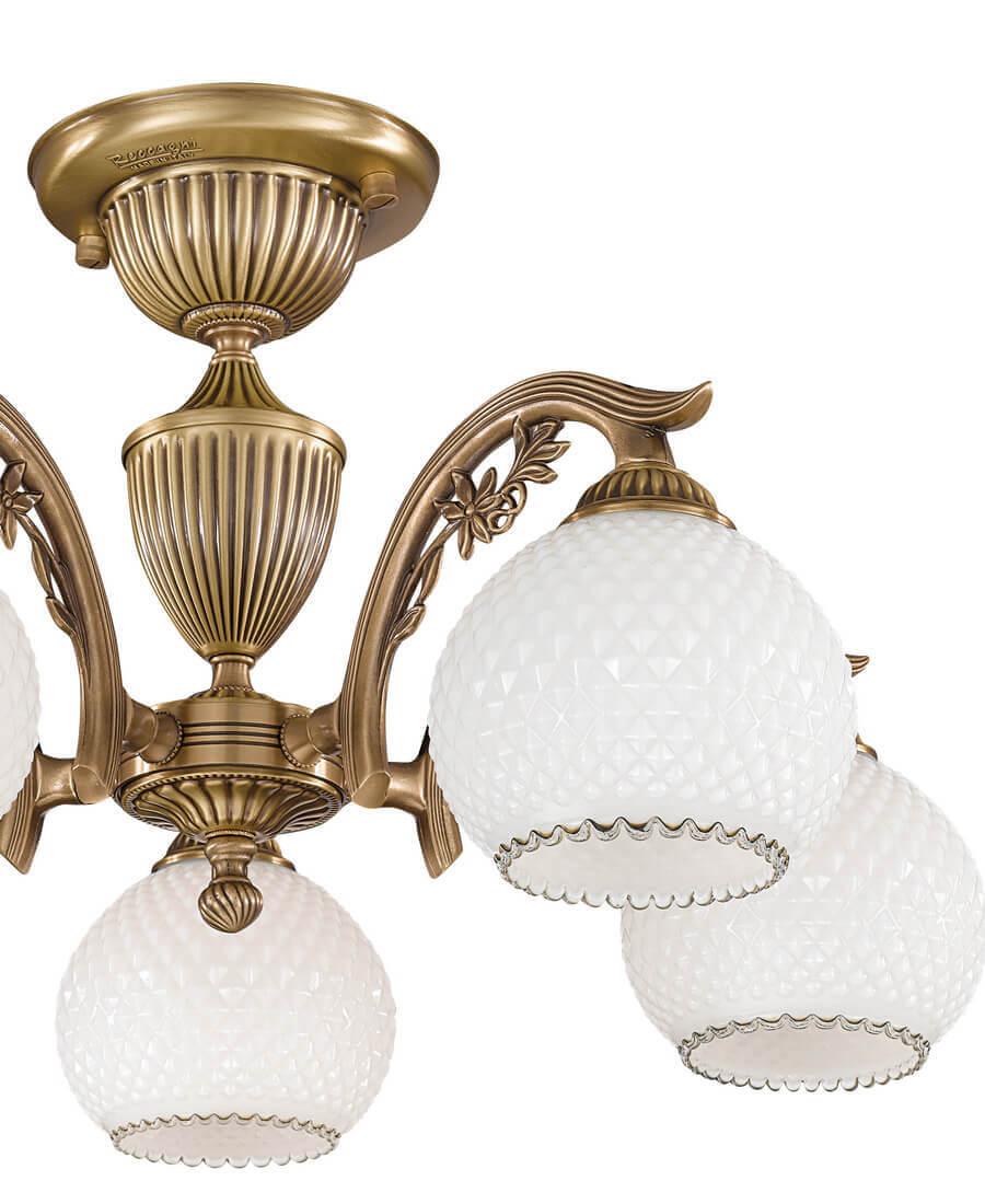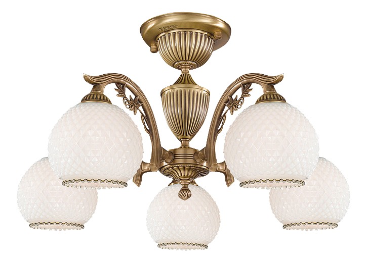 Потолочная люстра Reccagni Angelo PL 8620/5 Итальянского производсва – уникальное сочетание высокого качества и удивительных фактур. Этот светильник Классического стиля хорошо подойдет Для спальни и придаст помещению мягкий и приятный свет. Плафоны белые из стекла. Арматура бронза из металла. Кол-во ламп - 5шт. Общая мощность 300W