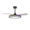 RAFAGA - это коллекция универсальных круглых светодиодных светильников с функцией дистанционного управления и регулировкой высоты. Главной особенностью данной коллекции являются трансформирующиеся лопасти вентилятора, которые раскрываются над светильником. С помощью пульта пользователь может управлять яркостью и цветовой температурой освещения, скоростью вращения вентилятора, а также открывать или закрывать лопасти. Каждый светильник коллекции способен менять свою цветовую температуру от 3000K до 6500К. Такая свобода в использовании дает возможность менять настроение и образ комнаты с помощью пары движений. Светильники RAFAGA станут идеальным световым решением для просторных комнат, которые служат для ряда различных функций, например, как рабочее пространство днем и зона отдыха вечером. Лаконичный дизайн коллекции впишется в широкий спектр интерьеров от кухни до офиса. Светильники доступны в двух цветовых вариантах: белый и черный. Коллекция оснащена RGB подсветкой по периметру светильника.