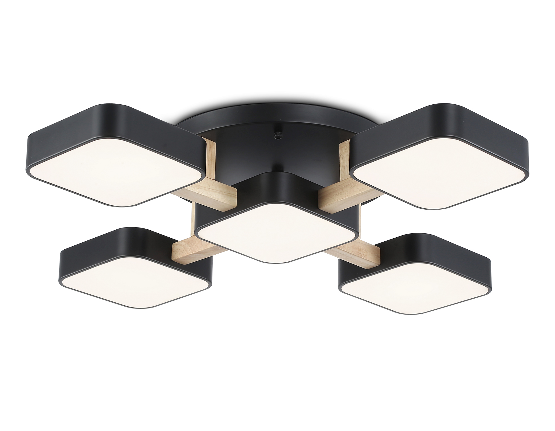 Подвесной светодиодный светильник, коллекция COMFORT. Модель FL4883 представлена в современном стиле хай-тек, техно. Светильник выполнен из металла и дерева. Модель оснащена встроенными светодиодами, благодаря чему вы забудете о замене дополнительных ламп. Данная модель подходит для натяжных потолков и будет прекрасным дополнением в любом помещении. FL4883/5 BK/WD черный/дерево 90W 3000-6000K 675*675*110 (без ПДУ) . Данную модель FL4883/5 BK/WD спешите купить с быстрой доставкой в магазине 220svet.ru